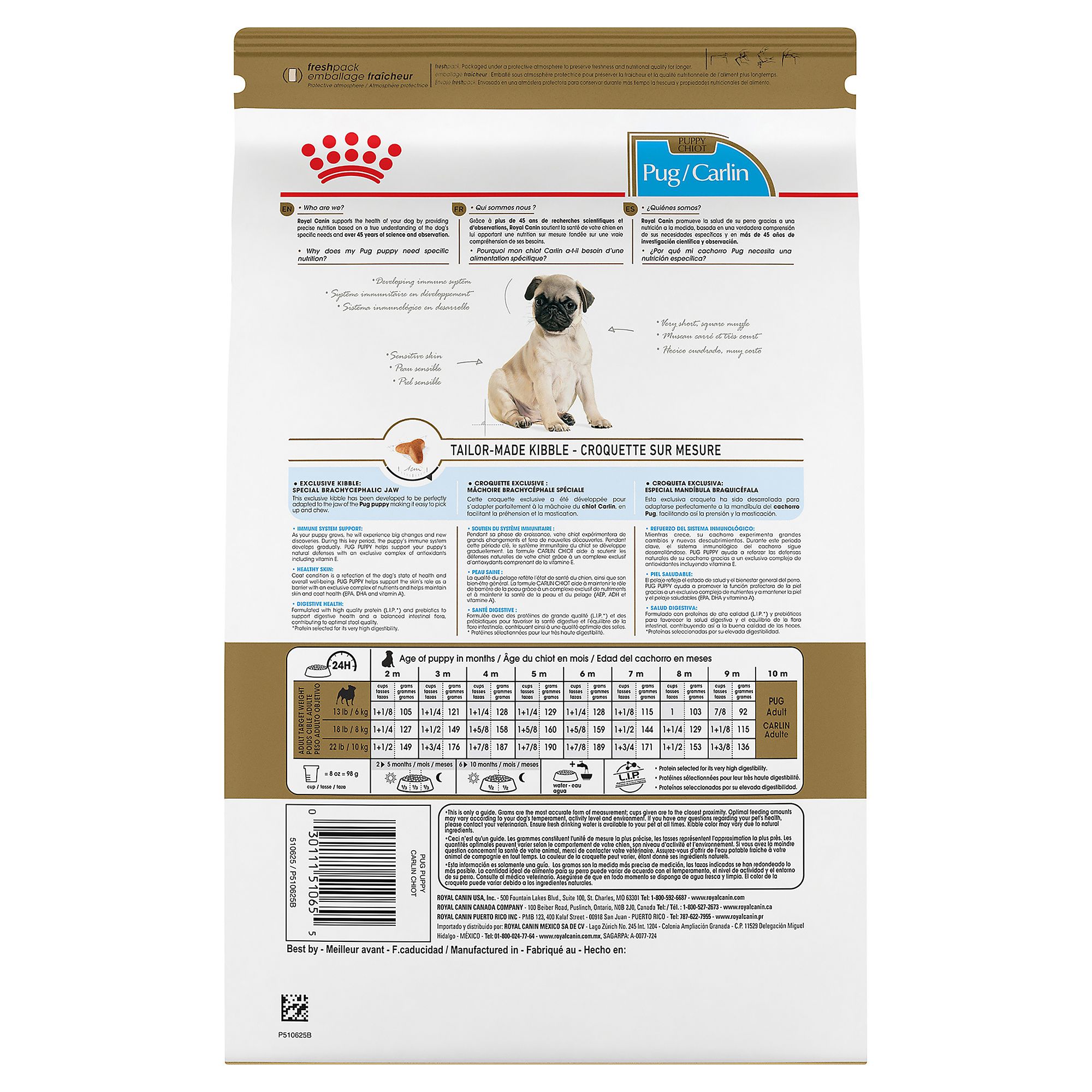. Available in 40 lb and 20 lb paper and 5 lb poly bags. Royal Canin Breed Health Nutrition Pug Adult Dry Dog Food 10-lb bag. Up to 48 cash back Supports healthy skin and coat by reinforcing the skin barrier with essential nutrients.
